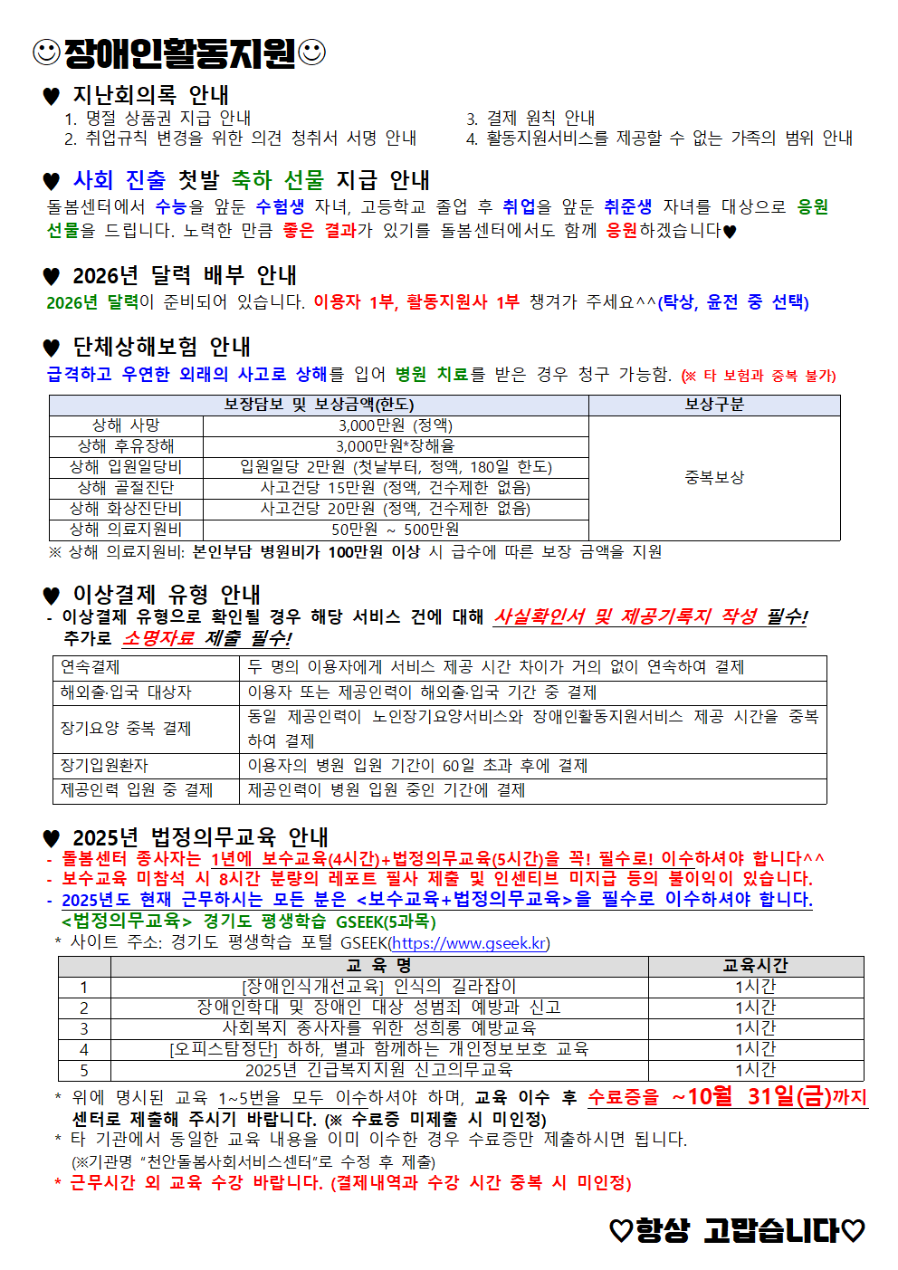 *장소 : 천안돌봄센터 2층 교육실